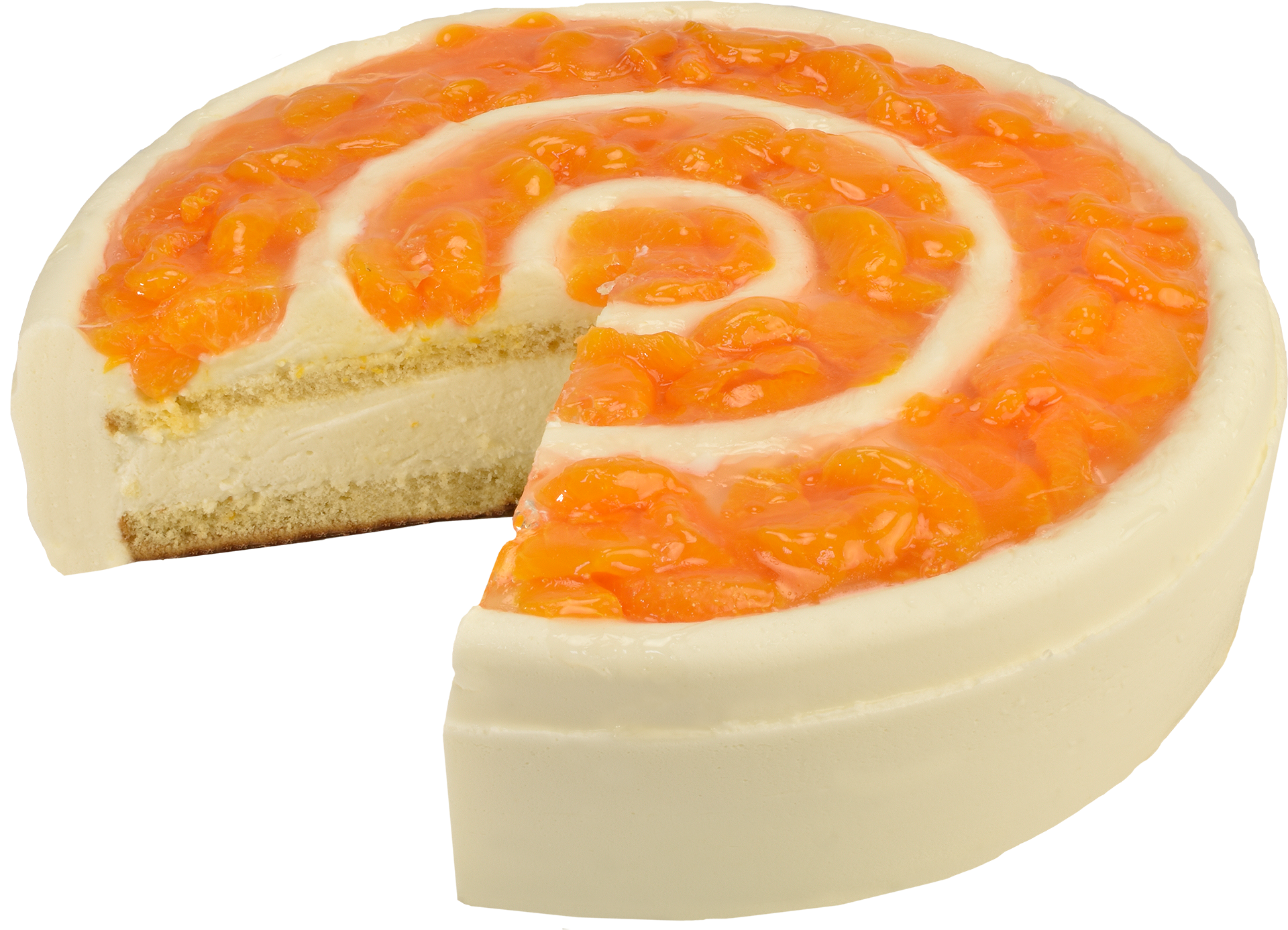 Pure Erfrischung! Heller Bisquitboden gefüllt mit frischer Joghurt-Sahne und gedeckt mit fruchtigen Mandarinen.